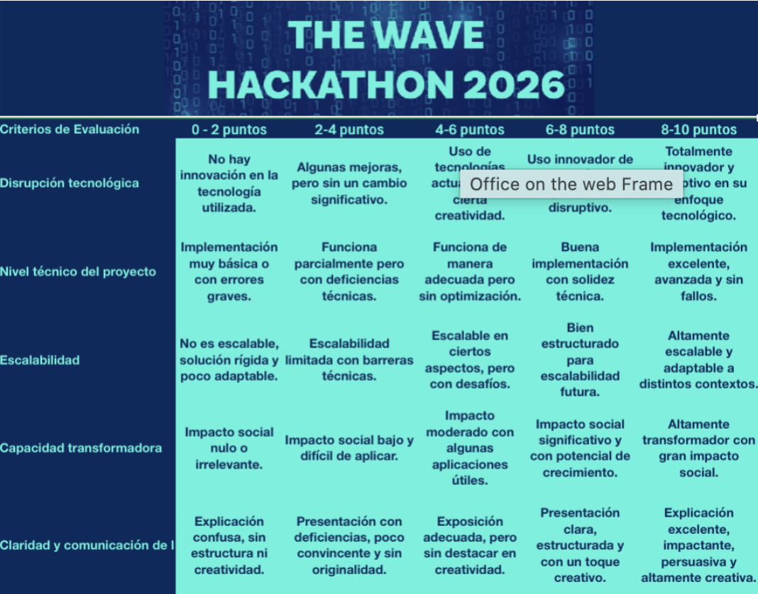 La evaluación de los retos se realizará de acuerdo con la rúbrica adjunta y publicada en la web del evento, pudiendo ser interpretada por el jurado. Se tendrán en cuenta los siguientes aspectos:
